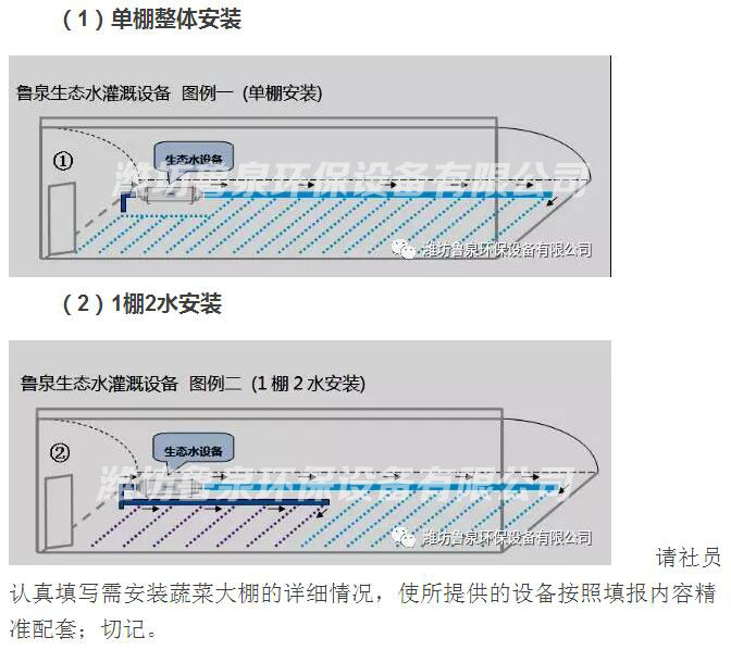 基于以上技術(shù)原理,濰坊魯泉環(huán)保設(shè)備有限公司依據(jù)社員蔬菜大棚的現(xiàn)場實(shí)況,所涉轄區(qū)農(nóng)委辦公室要求公司特繪制部分類似圖集,供社員選擇近似方法安裝,供參考確定: