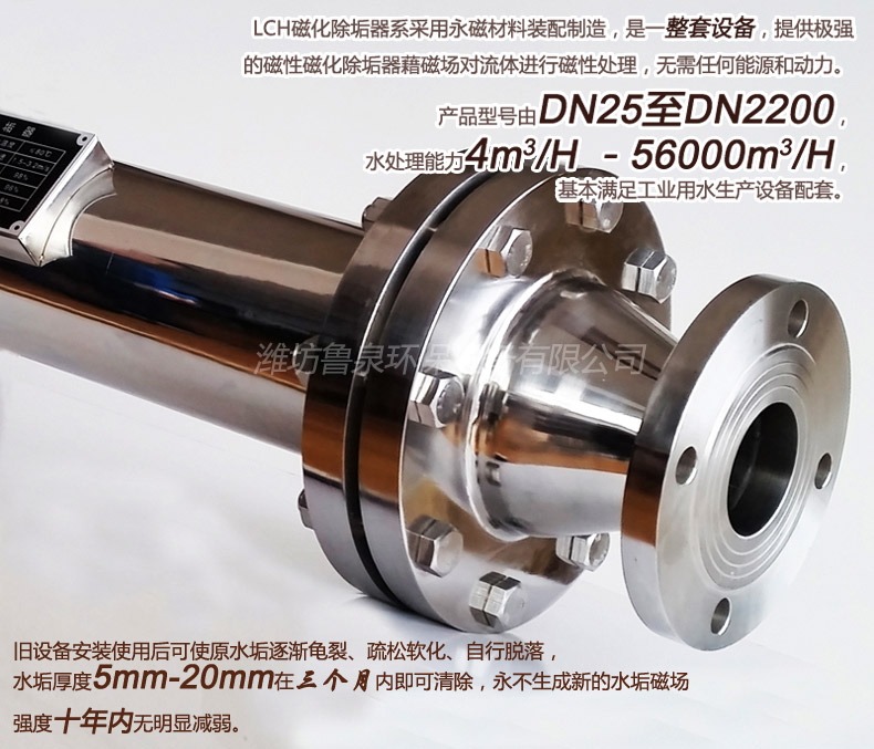 水分子有較強(qiáng)的極性。具有一定電導(dǎo)率的水或溶液以一定的速度垂直磁力線(xiàn)通過(guò)強(qiáng)磁場(chǎng)時(shí),可以引起電子激發(fā),影響所析出沉淀的離子鍵,使所生成的沉淀強(qiáng)度降低,不再形成堅(jiān)硬有序的結(jié)晶,而是像雪花那樣堆積,由于它和器壁的結(jié)合力弱,可不粘附受熱設(shè)備表面而隨水流沖走。同時(shí)由于水分子偶極距增大,使其與鹽類(lèi)正負(fù)離子吸引力增大,使受熱設(shè)備、管壁上原有的舊垢逐漸龜裂,疏松軟化,自行脫落,達(dá)到防垢除垢目的。水垢一旦清除,不再結(jié)新垢。讓生產(chǎn)設(shè)備最終處于潔凈狀態(tài),達(dá)到環(huán)保、節(jié)能效果。